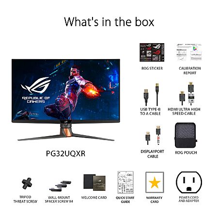 Model: ASUS ROG Swift 32” 4K Mini LED Gaming Monitor (PG32UQXR) -UHD (3840 x 2160), 160Hz, 1ms, Fast IPS, Local dimming, FreeSync Premium Pro, HDMI 2.1, DisplayPort 2.1 with DSC, Quantum Dot, DisplayHDR1000
