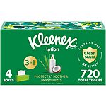 Amazon has 4-Pack 180-Count Kleenex Lotion Facial 3-Ply Tissues for $9.98 - 15% when you 'clip' the coupon on the product page - 5% when you check out via Subscribe & Save = $7.98. Shipping is free with Prime or on $35+ orders.