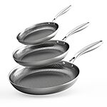 【Non-Toxic Frying Pans Set】: The frying pan set is made of 3-ply food-grade stainless steel to ensure even and fast heat distribution without harmful coatings and is free from harmful materials such as PFOA, PTFE, PFAS, lead, cadmium and toxic metals