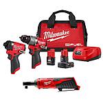 3-Tool Milwaukee M12 Kit w/ FUEL Hammer Drill + FUEL Impact Driver + Ratchet