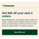 Instacart Targeted Accounts Get $40 off your next 2 orders