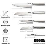 | Product Description: | Upgrade your kitchen with the KitchenAid 5-piece Forged Stainless Steel Knife Set, curated for diverse culinary tasks. This essential set includes an 8-inch chef knife, perfect for slicing, dicing, chopping, and mincing with precision; a 7-inch santoku knife distinguished by its oval indentations that reduce drag and make slicing more efficient, ideal for making clean cuts through meats and larger vegetables; a 5.5-inch serrated utility knife that effortlessly handles tough-skinned fruits and vegetables, perfect for slicing tomatoes and bread; a 5-inch santoku knife that offers the same advanced slicing features in a smaller profile, ideal for chopping and dicing smaller vegetables; and a 3.5-inch paring knife, specifically designed for detailed tasks such as peeling, trimming, and precision cutting. Each knife is forged from high-carbon, semi-polished Japanese steel, ensuring durability and a sharp, professional-quality edge. The ergonomic, Eastern-style handles provide comfort and control, making daily food preparation smoother and more efficient. Custom-fit blade covers are included, ensuring safe storage and preservation. KitchenAid® knives are top-rack dishwasher safe, but for extended durability, hand washing is recommended. Dry immediately after washing. ESSENTIAL KITCHEN KNIFE SET: This KitchenAid 5-piece Forged Knife Set offers versatile knives tailored for various culinary tasks. The set includes an 8-inch chef knife, perfect for precise slicing and efficient chopping; a 7-inch santoku knife, featuring oval indentations to prevent food from sticking, ideal for smoothly cutting meats and vegetables; a 5.5-inch serrated utility knife, excellent for tackling tough exteriors like crusty breads and soft interiors such as tomatoes; a 5-inch santoku knife, also equipped with oval indentations for quick, non-stick chopping of vegetables and smaller ingredients; and a 3.5-inch paring knife, essential for detailed tasks such as peeling, trimming, and seed removal. Each knife is expertly forged to provide lasting sharpness and durability. LONG-LASTING SHARPNESS: Each blade is forged from semi-polished, high-carbon Japanese steel, hardened and tempered to maintain a durable, professional-quality edge cut after cut. ERGONOMIC HANDLE: Constructed for perfect stability and control, these Eastern-style ergonomic handles feature a well-balanced design with a brushed stainless steel finish for a secure and comfortable grip. BLADE COVERS INCLUDED: Each knife in this set comes with a protective blade cover, making storage safe and convenient while helping maintain the sharpness of the blades. EASY CARE AND MAINTENANCE: These KitchenAid knives are dishwasher safe on the top rack for convenient cleanup. To extend the life of your cutlery, hand washing is recommended. Dry immediately. |