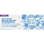 Buy 3x Tickets to any G or PG-rated Movie, Get $10 Off when you apply promo code