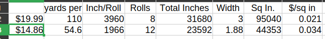 So, yeah, half again cheaper than the cheaper 2" tape and way cheaper than the usual 3" tape price