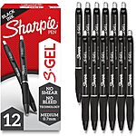 12-Count Sharpie S-Gel Gel Pens (Black Barrel, Medium Point 0.7mm, Black) on sale for $8.76 - $0.44 (5% Subscribe & Save discount) =