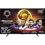 $1497.99: 98″ Hisense QD5 QLED 4K UHD Smart Google TV (98QD5QG, 2025 Model) at Amazon