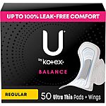 50-ct U by Kotex Balance Ultra Thin Pads w/ Wings (Regular Absorbency)