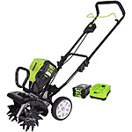 Greenworks TL80L210 10" 80V Cultivator/Tiller – Includes 2.0Ah Battery & Charger, $174