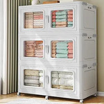 - Feature front double magnetic doors with easy-pull handles for daily quick access and a top lid for direct retrieval of large items like blankets