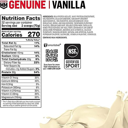 Model: Muscle Milk Genuine Protein Powder, Vanilla Creme, 32g Protein, 4.94 Pound, 32 Servings