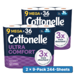 9-Count 2-Ply Cottonelle Mega Rolls Toilet Paper (Ultra Comfort or Ultra Clean) for $19.48 - $5 (multibuy discount) - 5% when you check out via Subscribe & Save =
