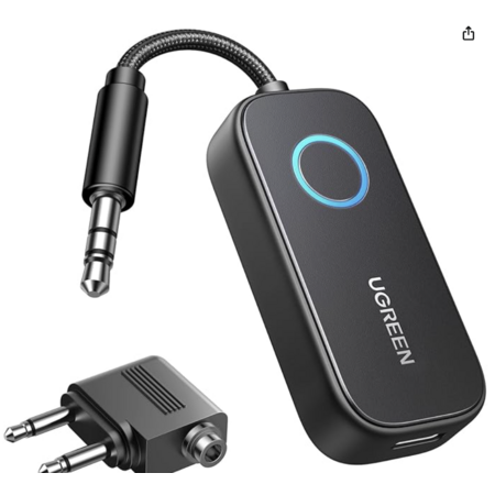 Model: UGREEN Airplane Bluetooth 5.4 Transmitter Receiver for 2 Airpods or Headphones, Airplane Travel Essentials 2-in-1 Wireless Bluetooth Adapter, 3.5MM AUX Jack Adapter on Flight, TV, Car Stereo
