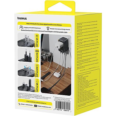 $35.99: 70-Watt Baseus Universal Travel Adapter with Retractable Cable + 45W Charger, PicoGo C1 at Amazon