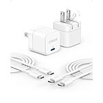 2-Pack Anker 20W USB-C Foldable Wall Chargers + 2-Pack 6' USB-C Cables (White)