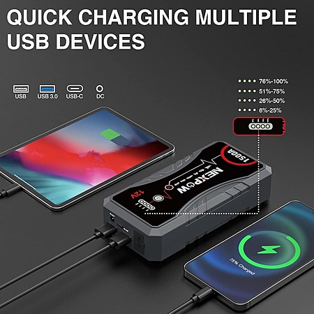 NEXPOW 1500A 12V Portable Jump Starter (up to 7L Gas/5.5L Diesel) $26.59 + Free Shipping