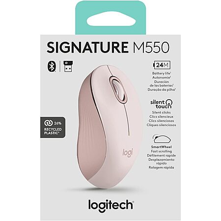 Model: Logitech Signature M550 Wireless Mouse - For Small to Medium Sized Hands, 2-Year Battery, Silent Clicks, Bluetooth, Multi-Device Compatibility - Rose