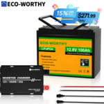 Eco-Worthy 12V 100Ah LiFePO4 Lithium Battery + 12V / 1000W / 55A Pure Sine Wave Inverter Charger on sale for $319.99 - 15% off w/ code
