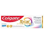 Amazon [amazon.com] has 3-Oz Colgate Total Plaque Pro Release Whitening Toothpaste for $5.36 - $2.97 off when you 'clip' the coupon from the product page - 5% off when you checkout via Subscribe & Save = $2.12. Shipping is free w/ Prime or on $35+.