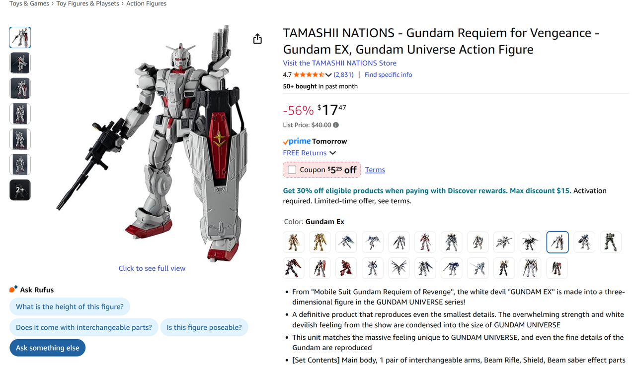 TAMASHII NATIONS - Gundam Requiem for Vengeance - Gundam EX, Gundam Universe Action Figure $12.22 AC (YMMV)