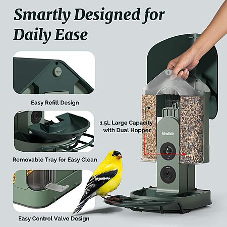 Model: Kiwibit Beako™ Smart Bird Feeder with 4K Camera Solar Powered for Outdoors - Ultra HD Live Stream, Enhanced AI Identification 10,000+ Bird Species, Real-Time Motion Detection, Easy Setup & Refilling