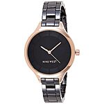 Slightly domed mineral crystal lens; Matte black dial with embossed markers and rose gold-tone hands
