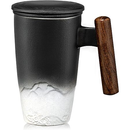 Prime Members: 13.5-Oz suyika Tomotime Wood Handle Ceramic Tea Cup w/ Infuser & Lid