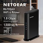 NETGEAR 4-Stream WiFi 6 Router (R6700AX) – Security Features, AX1800 Wireless Speed (Up to 1.8 Gbps), Covers up to 1,500 sq. ft., 20 Devices – Free Expert Help $59