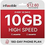 6-Month Infimobile Prepaid Mobile Unlimited Talk/Text + 10GB Data/Month Plan