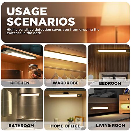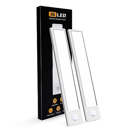 Under Cabinet Lighting, 36 LED Rechargeable, Motion Sensor, 3 Color Dimmable Closet Light Indoor, Wireless Under Counter Lights for Kitchen, Stairs (2 Pack, 8inch) $5.99