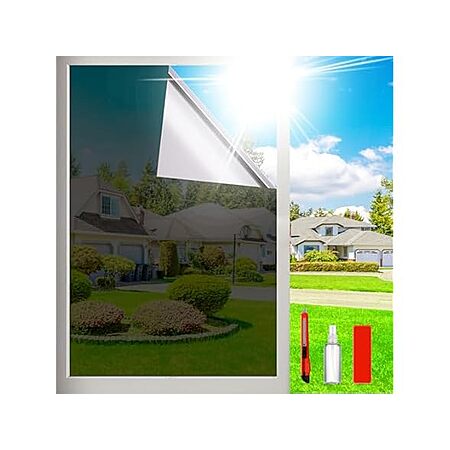 One Way Privacy Window Film Sun Blocking, Heat Blocking Window Tint for Home See Out But Not in, Static Cling & Anti UV, Black-Silver,35.4 Inch x 393.7 Inch $65.99