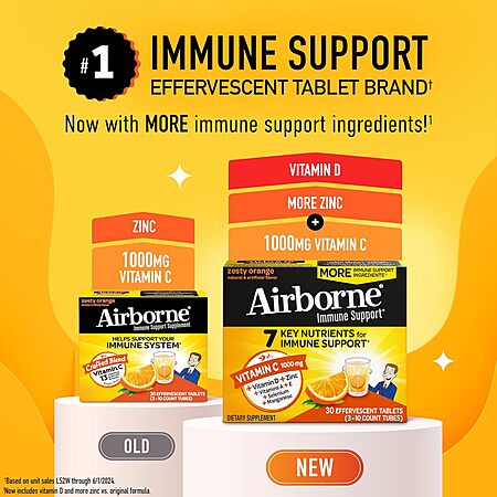 [S&S] $9.18*: 30-Count Airborne 1000mg Vitamin C w/ Zinc Immune Support Tablets (Zesty Orange) at Amazon