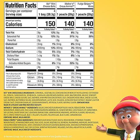 Model: Keebler Sweet & Salty Mix, Keebler Fudge Stripes, Mother's Circus Animals, Utz Mini Cheese Balls, 1 Oz. (Pack of 12)