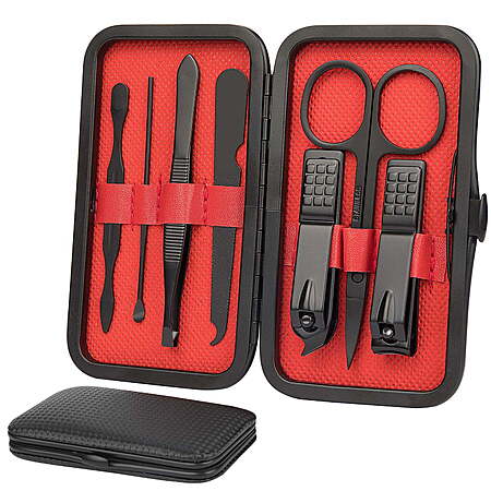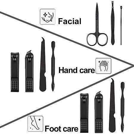 Product Description: | Product information: 7 pieces manicure set and pedicure set have all the tools you need to make a professional manicure and pedicure. Small size and light weight make it convenient to carry, and great for travel and daily life. Each tool is manufactured by the careful process of cutting to make sure it can be used more comfortably. It is very practical, it is a great gift for yourself, your families and friends. Manicure and pedicure set: The nail clipper set contains 7 pieces of nail clippers, oblique nail clippers, scissors, nail files, ear cleaner, tweezers, and double-head picks. The benefits of this kit are relatively inexpensive compared to many of the others. Easy to use, carry and store: Manicure and pedicure sets come in 4.3 x 2.4 x 0.7 inches. Compact, lightweight, ergonomic design for maximum portability. The non-slip handle design comes with a portable case that can be easily opened with a button Multi-functional care set: Multifunction for hand care, facial care, foot care. Perfect for travel and home users Product material and packing: Manicure and pedicure tools are made of high-quality stainless steel, which is sharp, sturdy, and durable. A smooth and beautiful appearance after multiple polishing prevents corrosion and minimizes the risk of infections. The packing of the product is beautiful, with the black leather case |