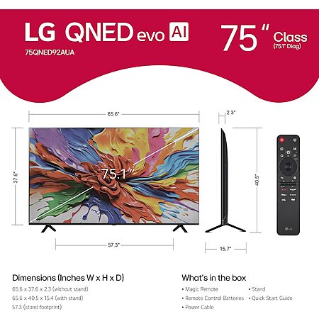 $1499.99: 75″ LG QNED evo AI QNED92A Series Mini LED 4K Smart TV w/Dolby Atmos (75QNED92AUA, 2025) at Amazon