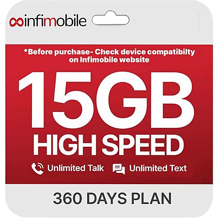 12-Month Infimobile Prepaid Mobile Unlimited Talk / Text + 15GB Data / Mo.