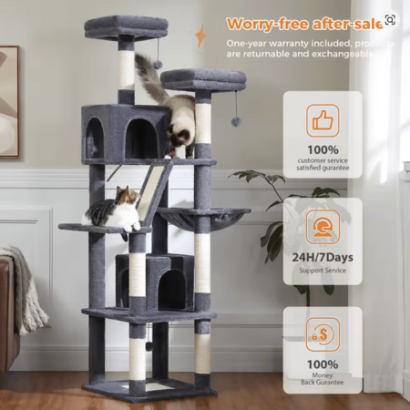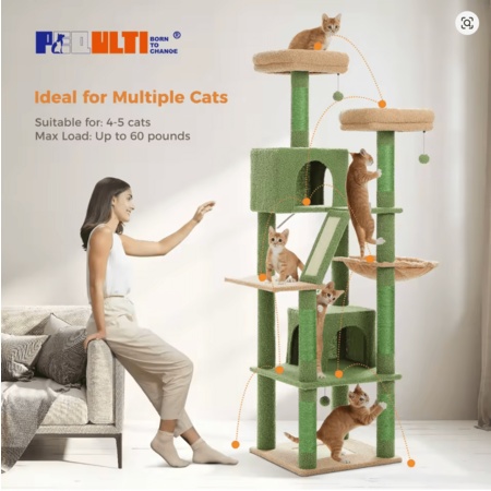Deluxe 180cm Multi-Level Cat Tree with Plush Condo 6 Scratching Posts 2 Boards Perches Caves Hammock Pompoms for Active Felines for $65.80 with code YZZL14