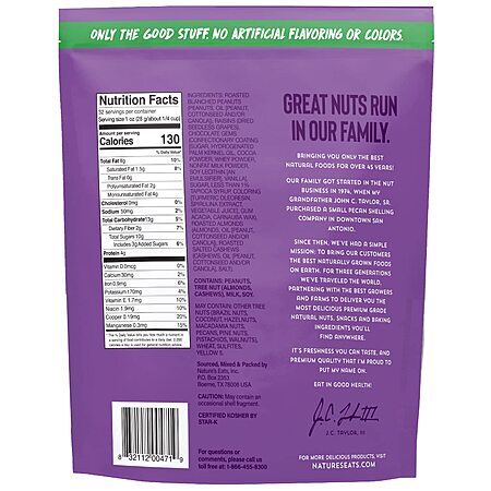 • Contains: Peanuts, Raisins, Chocolate Gems, Almonds, Cashews
