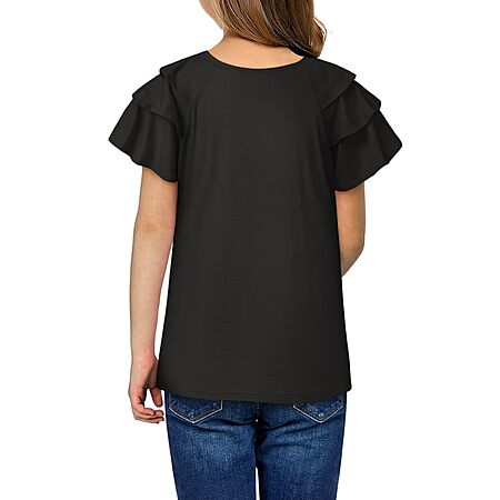 Girls Ruffle Sleeve Shirts Summer Cute Crewneck Blouse Tops 6-15 Years $7.99
