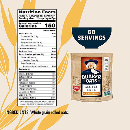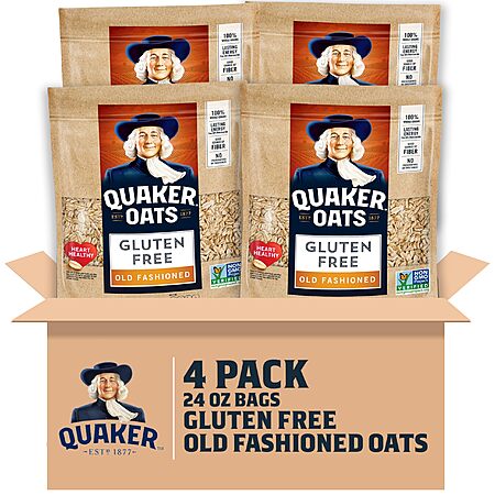 Quaker Gluten Free Old Fashioned Rolled Oats, 24oz Resealable Bags (Pack of 4) $23.56