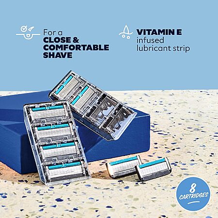 Model: Dollar Shave Club | 6-Blade Club Razor Refill Cartridges, 8 Count | Precision Cut Stainless Steel Blades with a Built-in Trimmer Blade On The Back, Designed For An Extra Close Shave, Silver/Blue