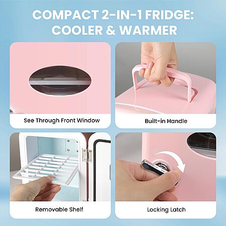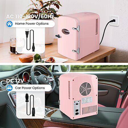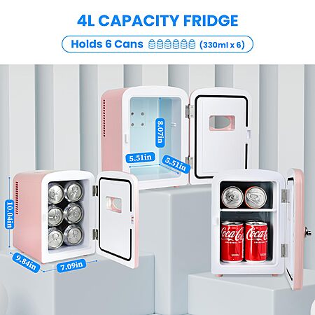HealSmart Portable Mini Fridge, 4 Liter 6 Can Cooler (Pink) $23.06 + Free Shipping w/ Prime or on $35+
