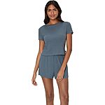 Model: Hanes Women's Originals 2-Piece Lounge, Supersoft Cropped Baby Doll Tee & Sleep Shorts Loungewear Set, Stargazer Grey/Stargazer Grey, Medium