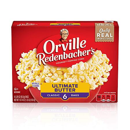 $3.68: 6-Pack 3.29-Oz Orville Redenbacher's Microwave Popcorn (Ultimate Butter) at Amazon (61.3¢ each)
