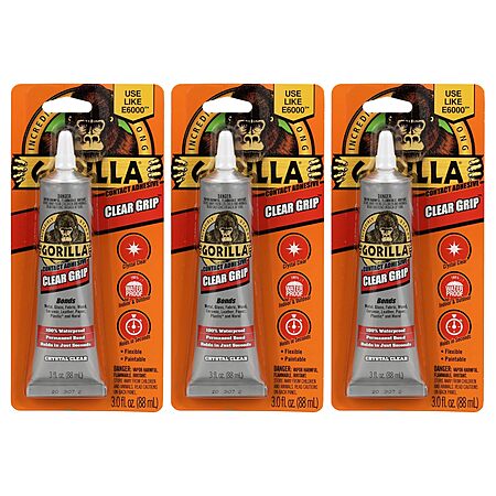 $8.97: 3-Pack 3-Oz Gorilla Clear Grip Waterproof Contact Adhesive at Amazon ($2.99 each)