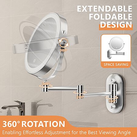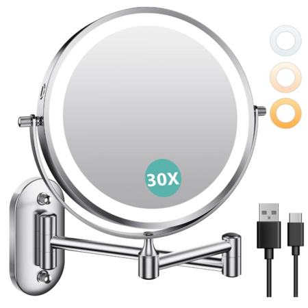 Auxmir 8" Rechargeable LED Wall Mounted 1X/30X Magnifying Mirror w/ 360° Extension/Rotation (Various Colors) $29.99 + Free Shipping w/ Prime