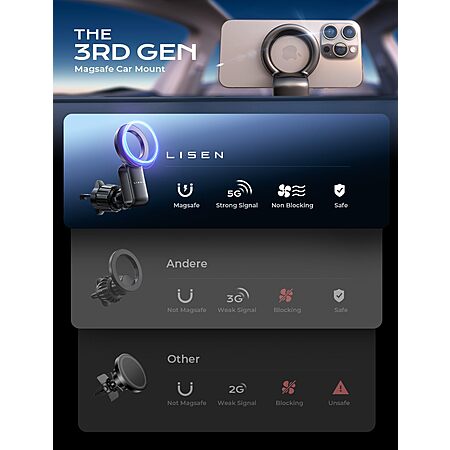 LISEN Fits iPhone 16 15 MagSafe Car Mount - [30 Super Magnets] Magnetic Car Phone Mount, Air Vent Cell Phone Holder, Automobile Car Phone Hold for iPhone 16 15 14 13 12 Pro Max Plus