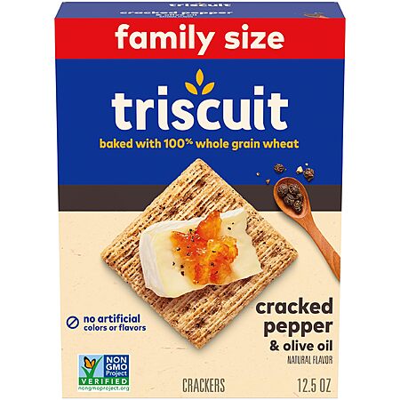 Triscuit Cracked Pepper & Olive Oil Whole Grain Wheat Crackers, Lunch Snacks, Snack Crackers, Family Size, 12.5 oz~$3.19 With S&S @ Amazon