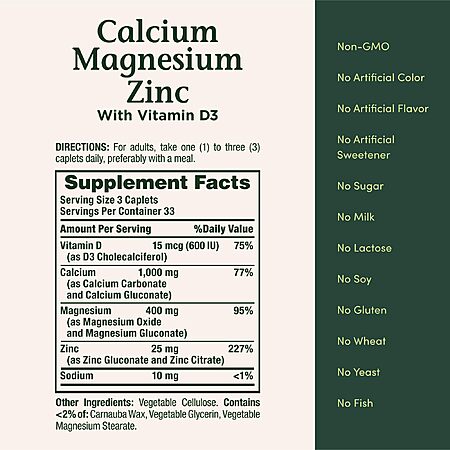 2x 100-Ct Nature's Bounty Calcium Magnesium & Zinc Caplets 1000mg Calcium, 400mg Magnesium, 600 IU Vitamin D $4.94 w/ S&S