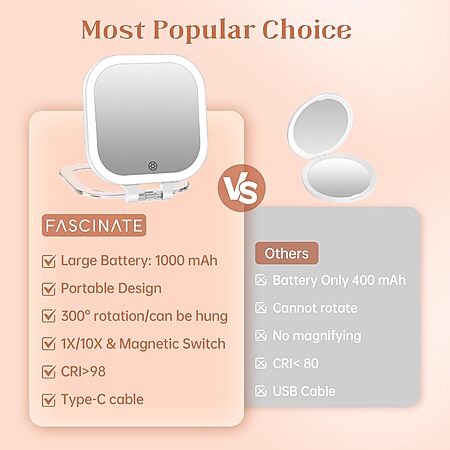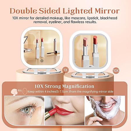 3.5" Fascinate 10X Magnification 1000mAh Rechargeable Compact Makeup Mirror w/ LED Lights (White) $8.99 & More + Free Shipping w/ Prime or on $35+