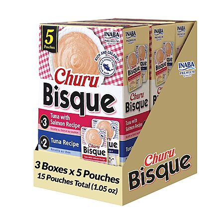 INABA Churu Bisque for Cats, Creamy Lickable Purée Side Dish with Vitamin E, 1 Ounce per Pouch, 15 Pouches, Tuna Variety Pack $12.6